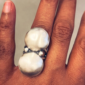 A medium-sized sterling silver ring featuring a vivid blue opal at its center. The outer silver border is accented with clean slit cuts, creating a subtle shield-like effect that frames the stone beautifully. Simple, unique, and effortlessly striking.