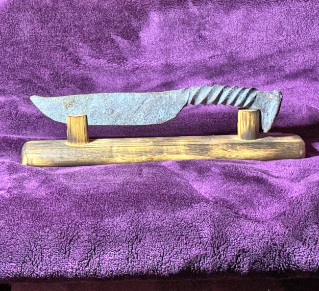 The Bowie-style blade offers versatility and presence, while the curved handle is shaped for control during extended use. Designed to live between working tool and functional art, each knife is crafted as a blank canvas—allowing finish, polish, and detail work to reflect the character of its owner.