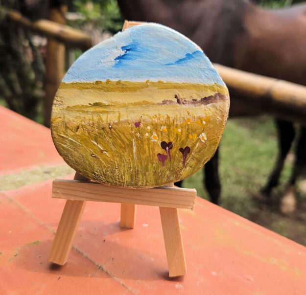 More than just décor, these miniature artworks celebrate the harmony between nature and creativity. From the branch of an orange tree to a finished painting, every piece carries its own history, texture, and soul.
