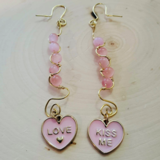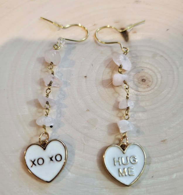 Delicately handcrafted, the Interlocking Love Earrings feature rose quartz or amethyst gem chips gracefully interlocking into flowing drops with white heart charms. Each earring embodies the love and calming energy. Lightweight and elegant, these earrings move gently with you, capturing attention with their unique artistry and meaningful symbolism. Handmade with intention in our home studio, they’re the perfect blend of natural beauty and serene energy—designed to ground your spirit and elevate your style.