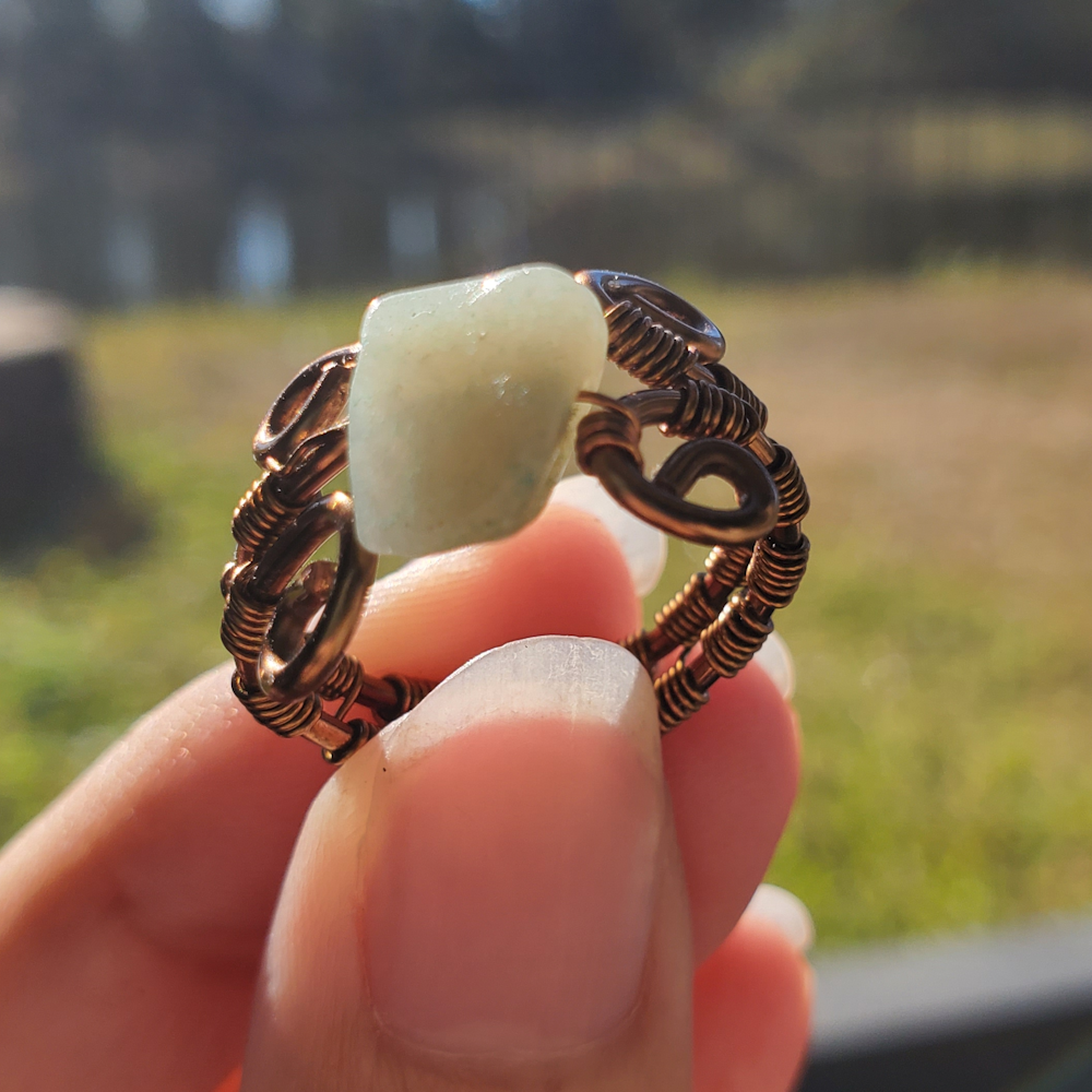 This elegant wire-wrapped ring features graceful spiral accents and a carefully set gemstone—each element chosen to symbolize growth, transformation, and the ever-unfolding journey of self-discovery. The spirals echo nature’s patterns of evolution, while the gemstone adds a unique energy and grounding beauty. Handmade with care and intention, this ring is a meaningful reminder to honor your path and embrace each new chapter.