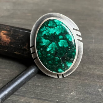 A luminous obsidian stone sits at the center of this sterling silver ring; its deep black surface polished to a glassy iridescent shine that reflects light with quiet intensity. The setting is clean, allowing the natural beauty and depth of the obsidian to remain the focal point.