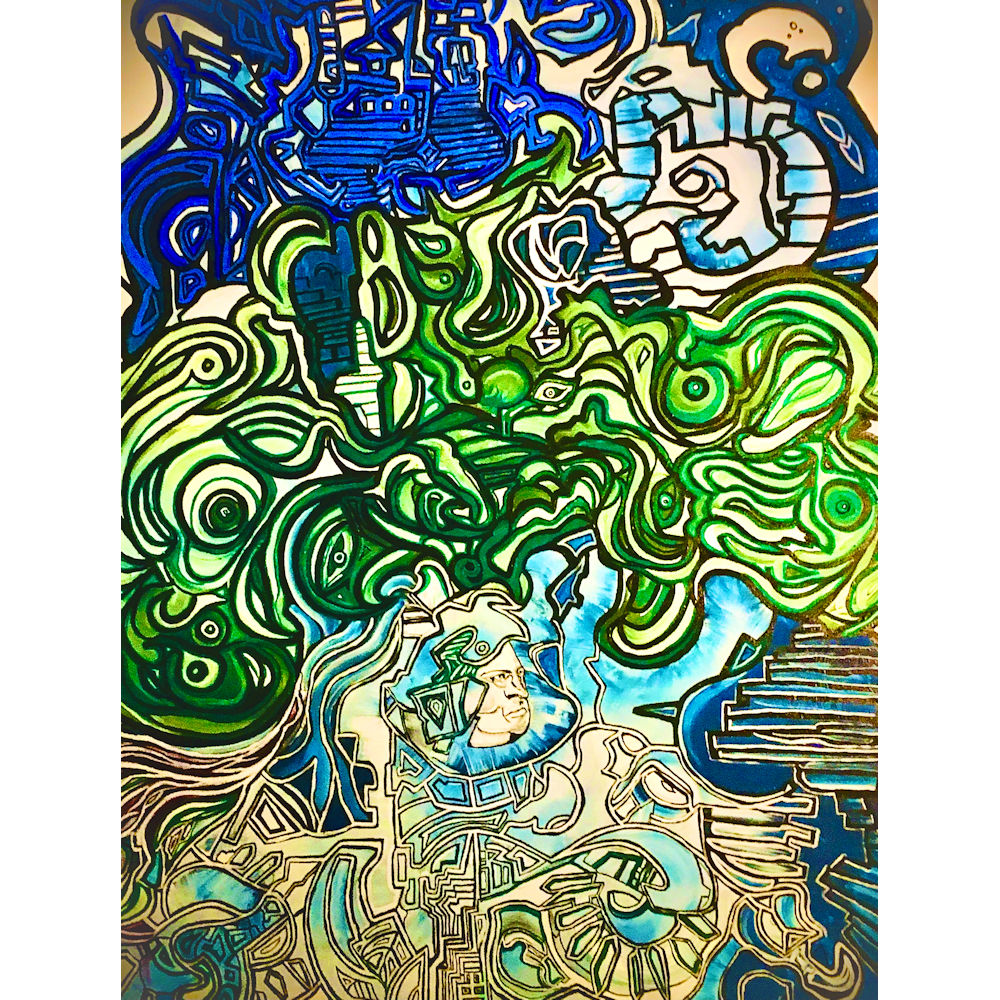 Step into an ancient vision—Shaman Vs. The Green Eagle flows with organic mysticism and primal symbolism-where image and instinct intertwined. This work echoes the refined simplicity of Polynesian and Mayan ancient art and the practice of turning nature into story. The shaman and the eagle—locked in a spiritual dance—form a mythic tension between the earthly and the ethereal. Rendered in flowing acrylic on canvas, stretched and framed with care, this piece invites you to connect. To wonder. To explore.