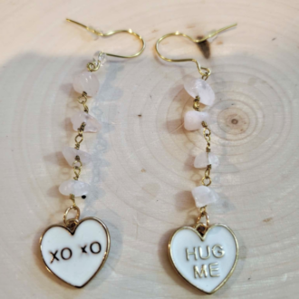 Soft and radiant, the Spiral to Love Earrings feature gentle rose quartz stones woven into graceful spiral drops. Known as the stone of love and compassion, rose quartz carries a nurturing energy that encourages self-kindness, emotional healing, and heart connection. Each earring is wrapped in delicate wirework, forming elegant spirals that symbolize personal growth and the unfolding of love in all its forms. Lightweight and full of warmth, they sway beautifully with movement—offering both comfort and quiet beauty. Handmade in our home studio with care and intention, these earrings are a tender reminder to move through the world with an open heart.