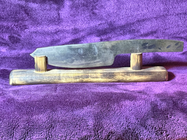 Hand-forged from a reclaimed wrench using traditional blacksmithing techniques, this utility knife is designed for everyday function with heirloom durability. Each blade is fire-forged and finished by the artist in her Seattle forge, resulting in a one-of-a-kind piece with natural variations that reflect its handmade origin.