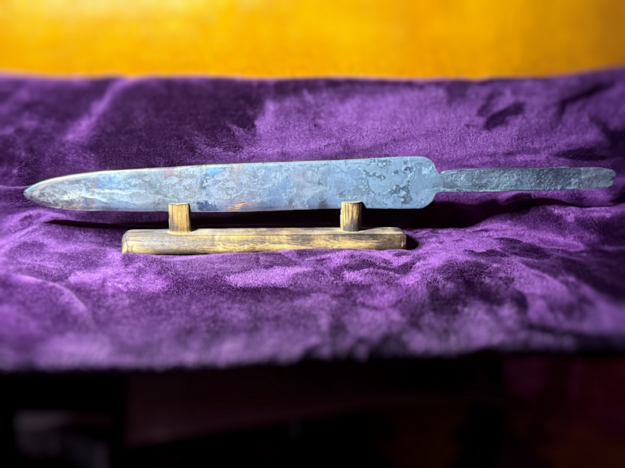Hand-forged from a reclaimed pipe wrench, this Viking short sword draws on centuries-old design and artisan craftsmanship. Forged entirely by hand and finished in the artist’s Seattle forge, each blade carries unique textures and subtle variations that make it a truly one-of-a-kind object.