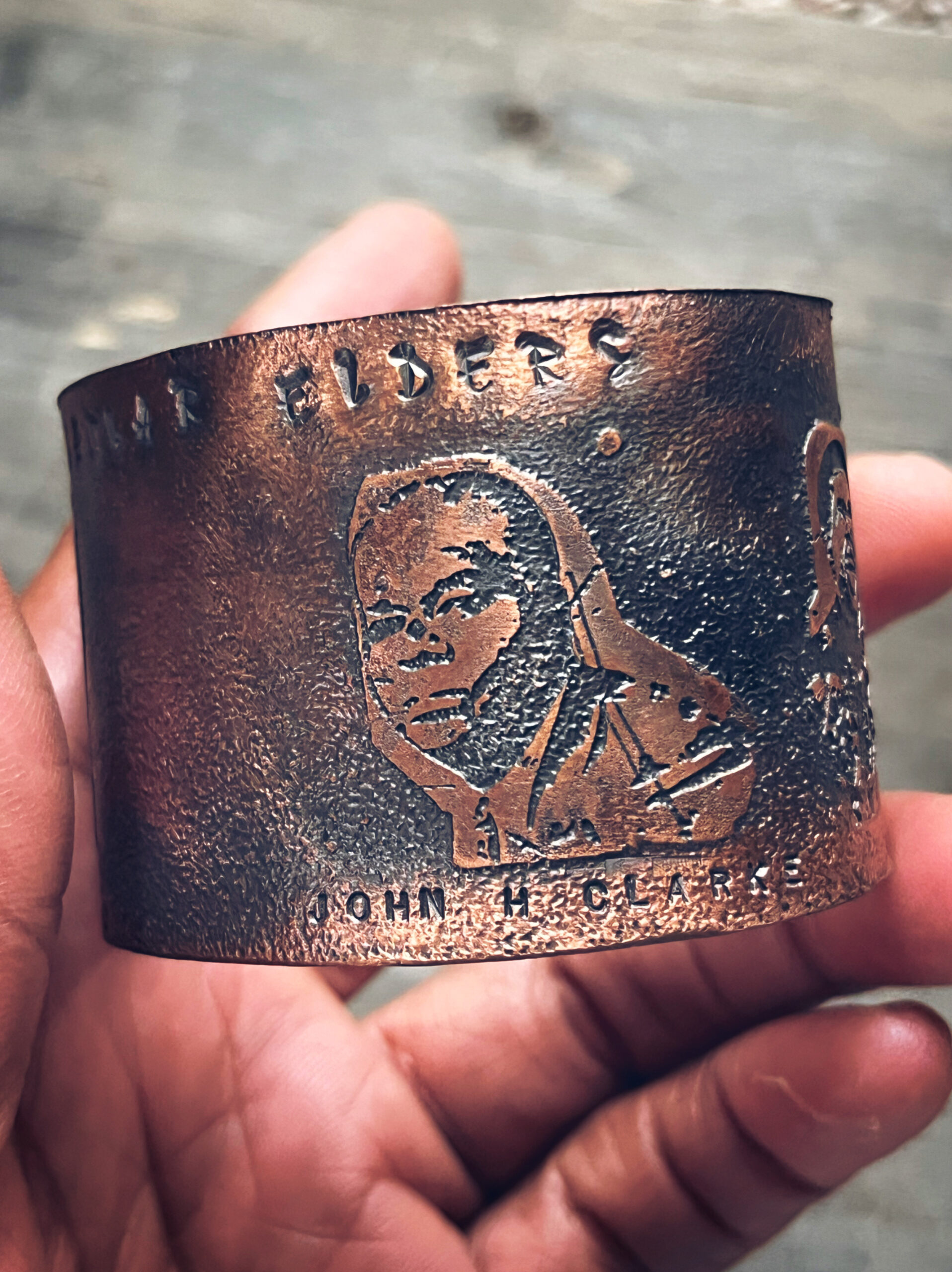 The Warrior Series honors revolutionary African and Black American ancestors who stood fiercely and unapologetically for their people. These pieces pay tribute to uncompromising warrior-elders, leaders, educators and freedom fighters whose strength, wisdom, and courage shaped history. Each cuff bracelet features hand-etched imagery, permanently engraved into copper, brass, bronze, or crafted in sterling silver.